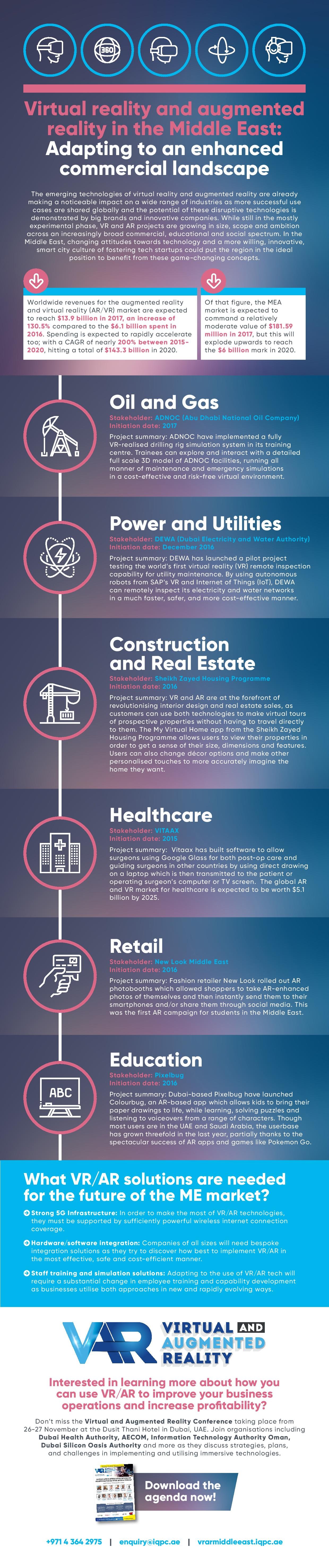 While still in the mostly experimental phase, VR and AR projects are growing in size, scope and ambition across an increasingly broad commercial, educational and social spectrum. In the Middle East, changing attitudes towards technology and a more willing, innovative, smart city culture of fostering tech startups could put the region in the ideal position to benefit from these game-changing concepts.