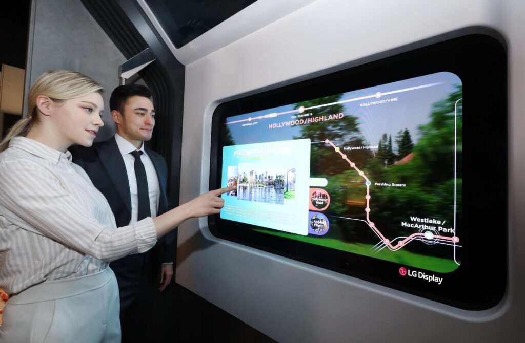 LG Display will additionally demonstrate how the company’s 55-inch Transparent OLED display can be applied to a subway train in a Metro Zone. While on board a virtual train carriage, passengers may look outside through the transparent display that has replaced a traditional window. Its high transparency enabled by OLED means passengers can still enjoy the passing scenery while viewing clear information such as subway line maps, weather information, and other news.