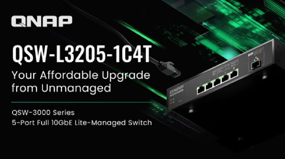 QNAP launched the new 5-port full 10GbE Multi-Gig/Fiber Lite-managed switch, the QSW-L3205-1C4T. Featuring four 10GbE Multi-Gig RJ45 ports and one 10GbE SFP+/RJ45 combo port, the QSW-L3205-1C4T maximizes network performance at minimal cost, making it the most economical choice for small studios and creators upgrading from unmanaged to Lite-Managed switches.